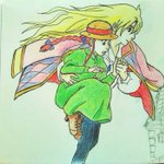 もういっちょ。 ハウルな景麒とソフィーな景王。 花粉症の季節はアナログで描くのダメだな😥 くしゃみと鼻水堪えながらペン入れしたら、線がガタガタ。 #イラスト #十二国記 #景王 #景麒