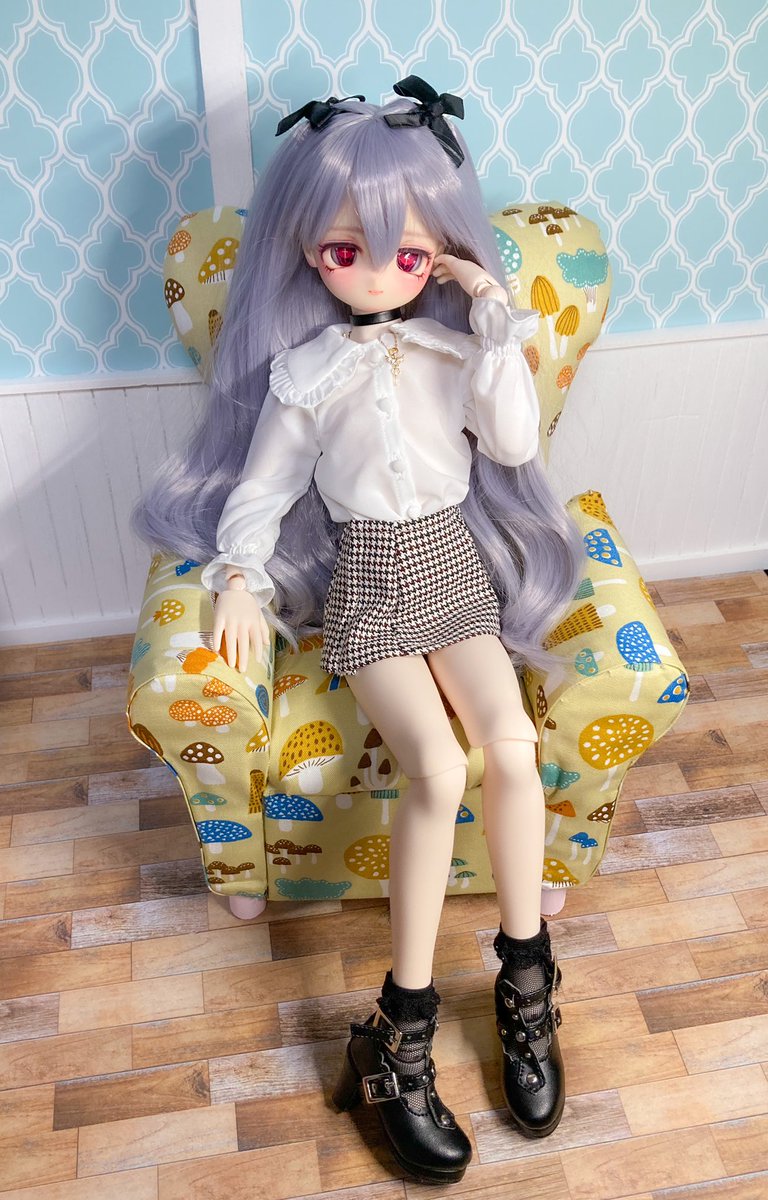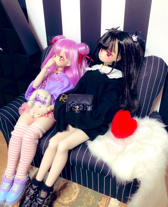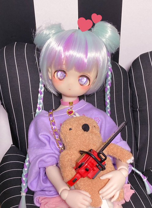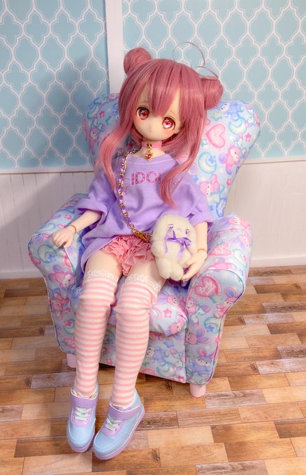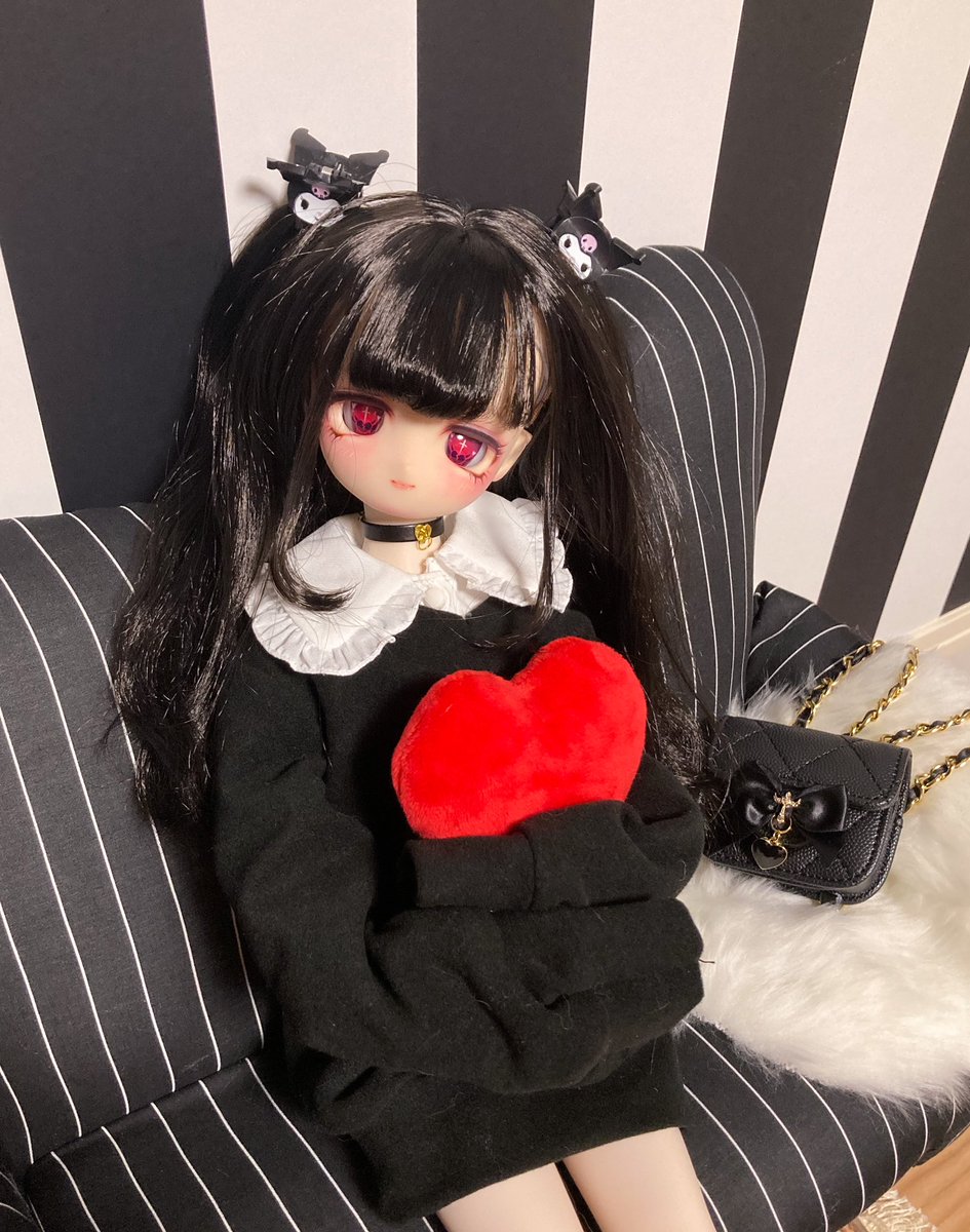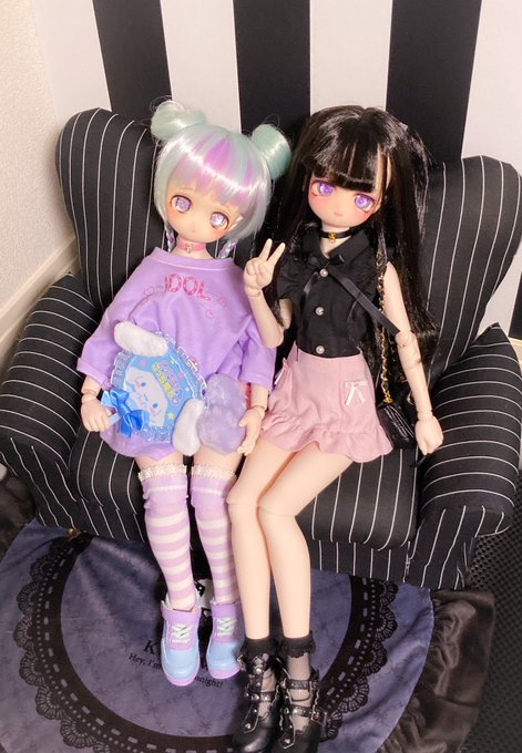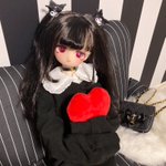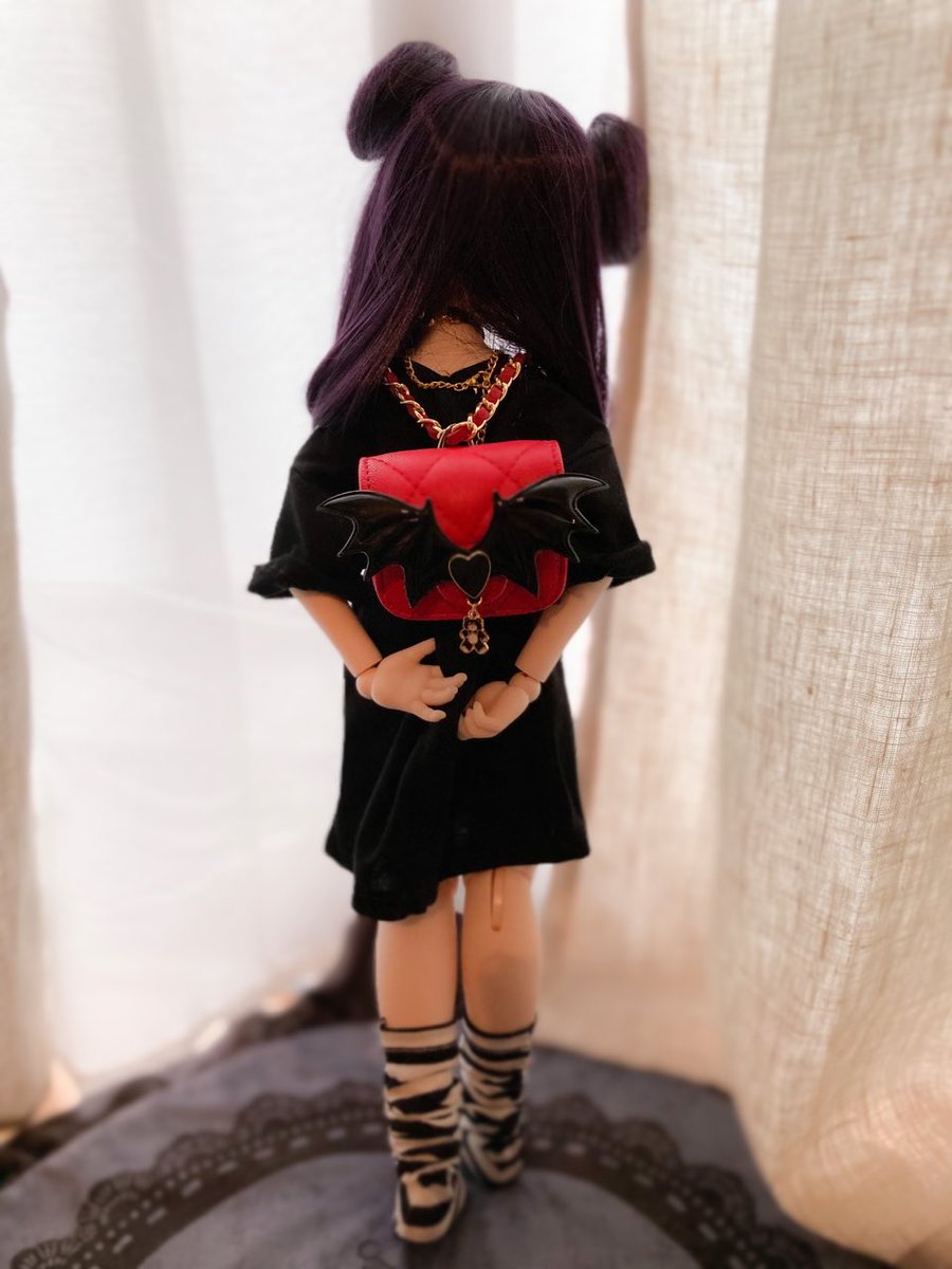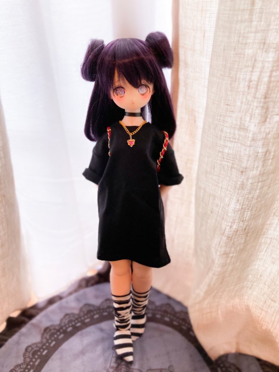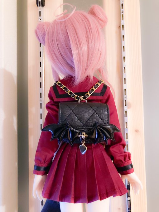 このウィッグならパープルみあって重すぎなくて のんちゃんでも黒髪いけた嬉しい🥺 リュックはランドセルちっくな赤のやつ。 ビッグTはリトワンさんの!プリントしたいーー #MDDはいいぞ #insomnia_wig #うちのこかわいい