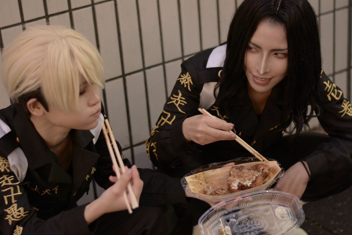 3 32 Cosplay 東京卍リベンジャーズ _____________________ 場地さん!美味いっすね🐙 _____________________ . 松野千冬:やと 場地圭介:愁 photo :Yua 22/03/29 20:34