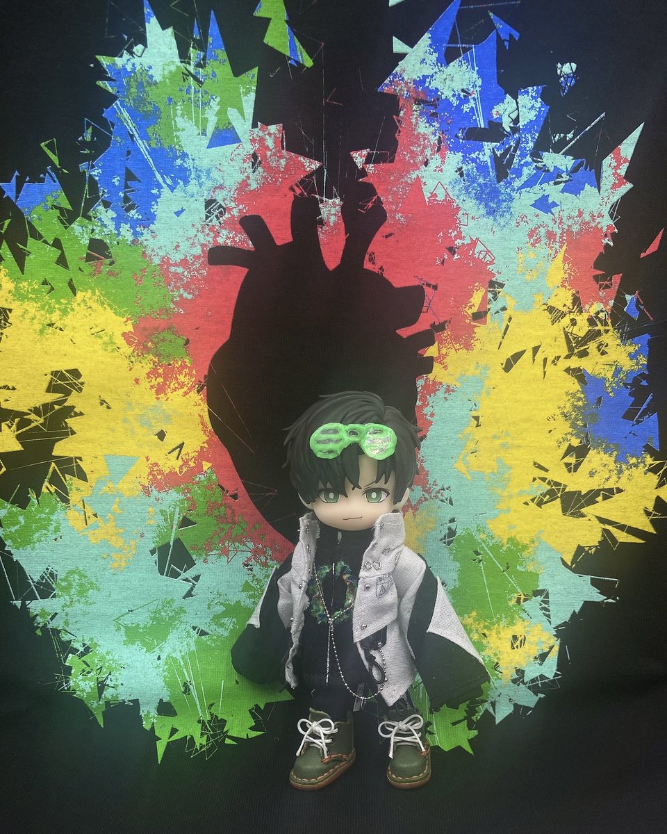 げろさんのサングラス姿😎がカッコ可愛すぎるので…どーしてもうちのちびげちゃんにもつけてあげたくて、初‼️レジンに挑戦しました(この為にライトとか買った) さりげなくTシャツもおNew💕 #肉チョモ美術館 #Geroイラスト祭り #めいちゃん美術館