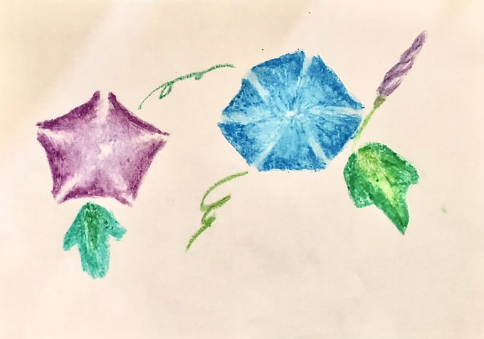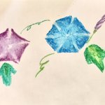夏にぴったり✨アサガオ! と思って描いたんですけど、合弁化の形が違うことに描いてる最中わかったんですけど、時すでに遅しだったのでお許しをw #イラスト好きな人とつながりたい #イラスト #クレヨン