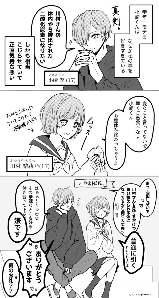 できた〜(´இωஇ`)!! #小崎くんは川村さんを好きすぎている というタイトルでいずれどっかに掲載予定のふたり。 掲載はいつになるかはわからん。 わからんけど小崎くん残念すぎて好き。 #漫画が読めるハッシュタグ #創作男女