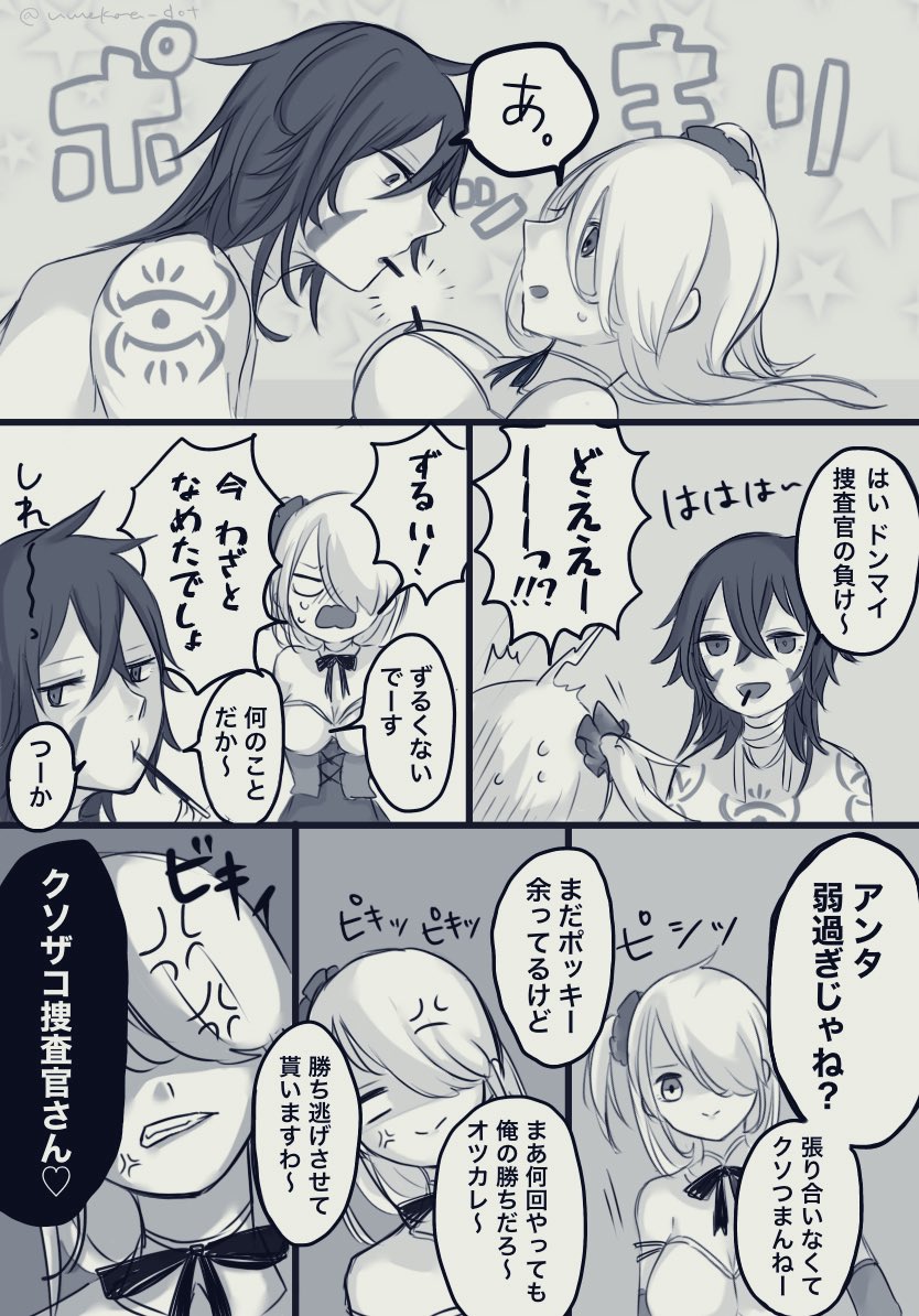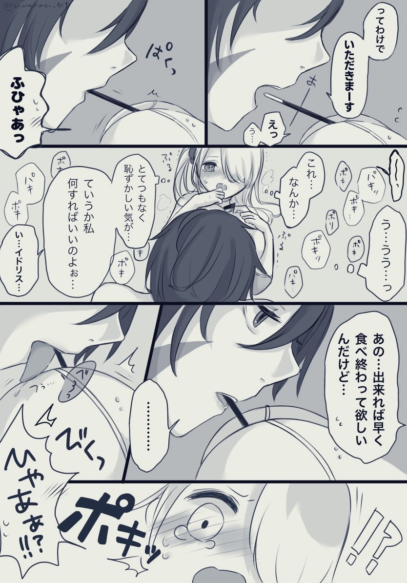 マイペースな罪人とポンコツ軍人が 様子のおかしいポッキーゲームをする漫画(1/2) #ポッキーの日 #漫画が読めるハッシュタグ #創作男女 #ポッキープリッツの日 #イドリシェ #異世界ゾンビ飯 ▽この2人が主人公の本編 ncode.syosetu.com/n8264go/