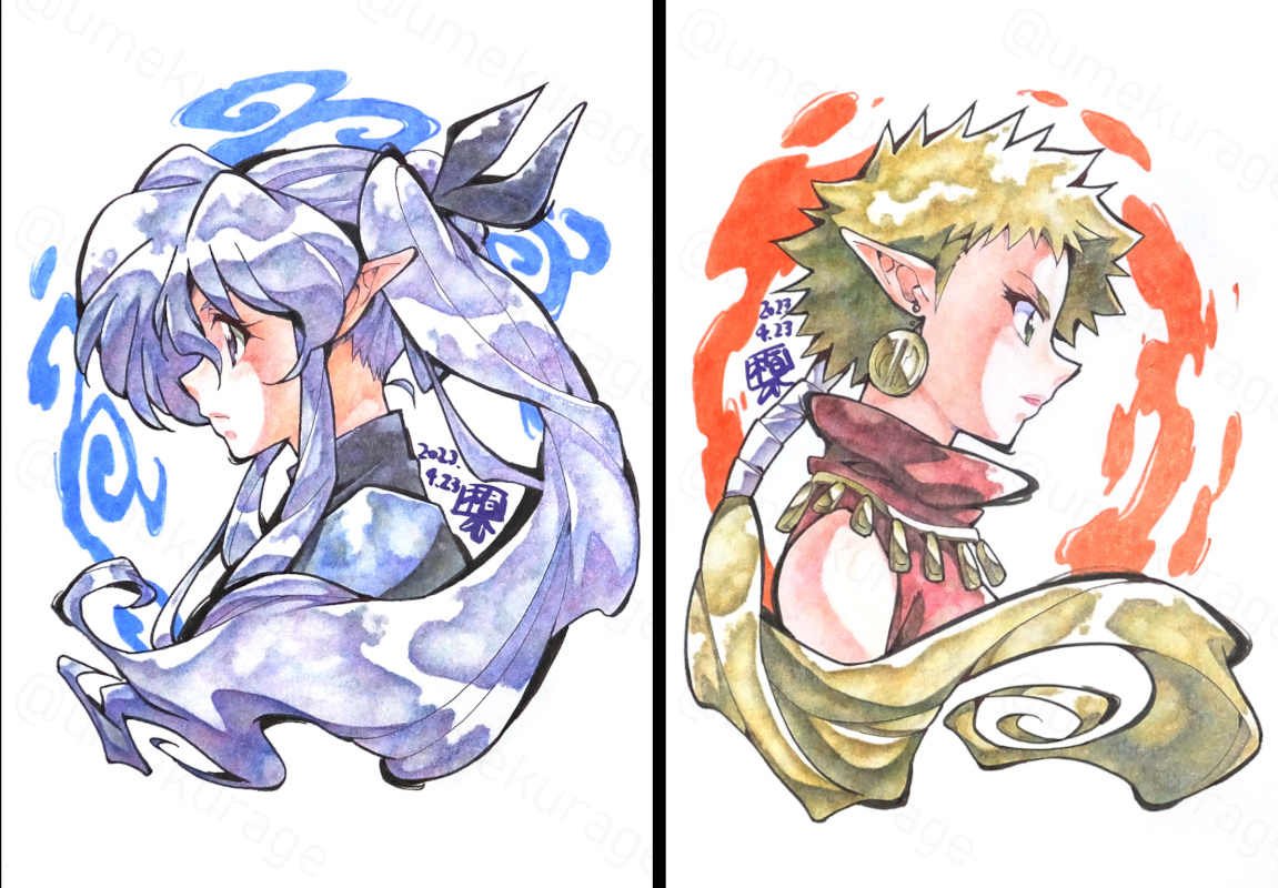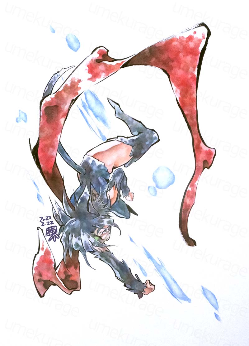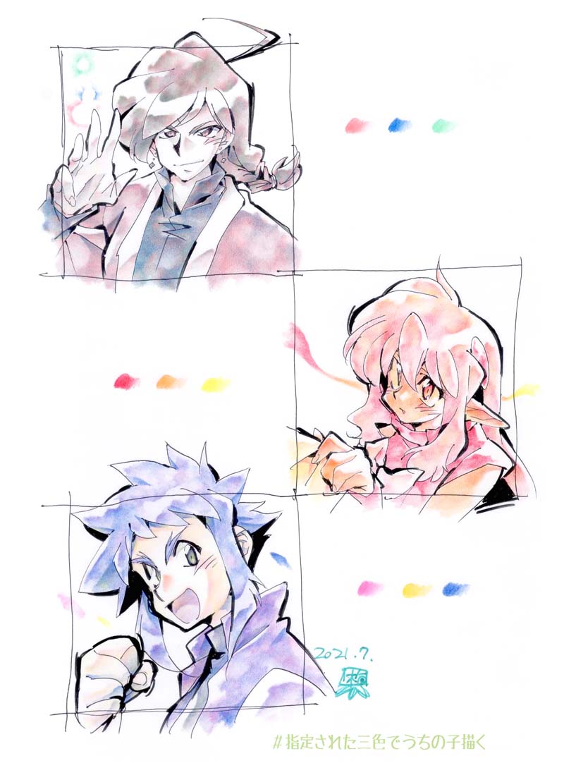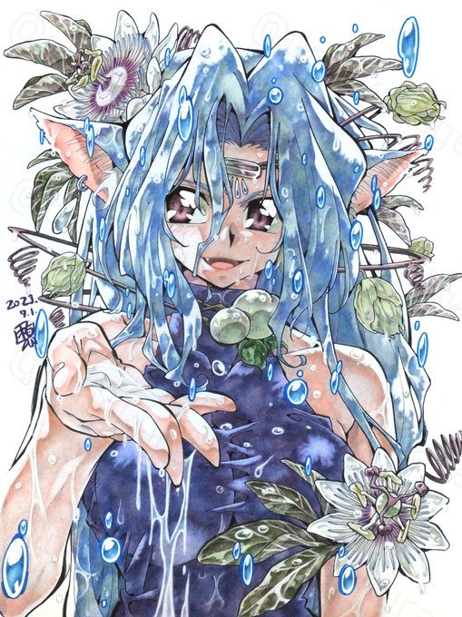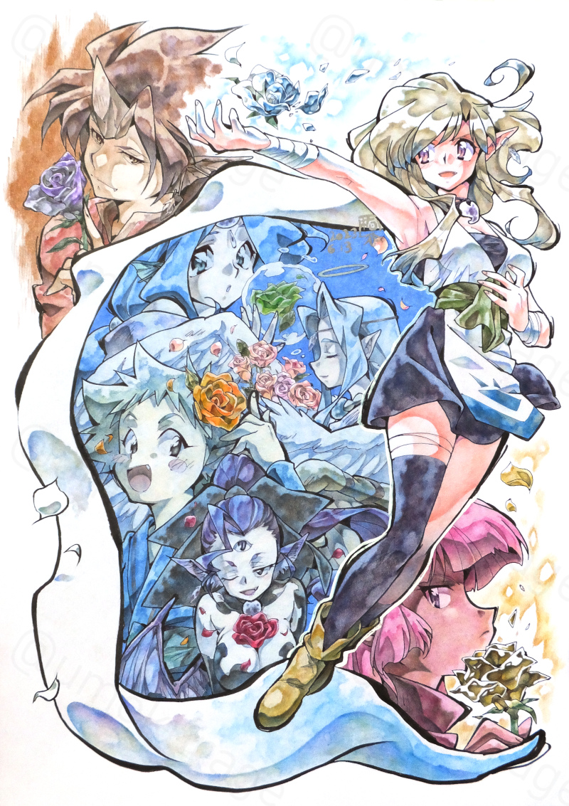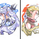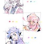 #2023年自分が選ぶ今年上半期の4枚 周年絵と集合絵は力も入るし時間もかかるしで外せないですね。寝そべり絵のリシュはポーズと表情がお気に入り。実はアナログ塗りで今年一番うまくいったと思ってるのは1枚目の蛙さん
