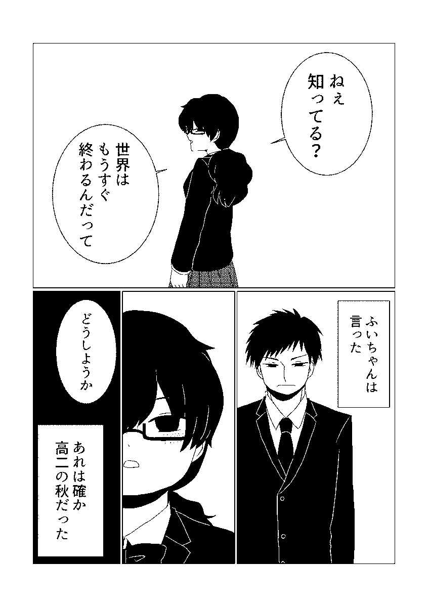 2015年に描いた創作漫画『週末』を期間限定で再公開しています 12/31まで公開予定です お暇な時間にでもよければ 「週末」と「終末」の話 続き🔽 【12/31まで再公開】「週末」【創作漫画】 | 梅豆郷 #pixiv pixiv.net/artworks/53368…