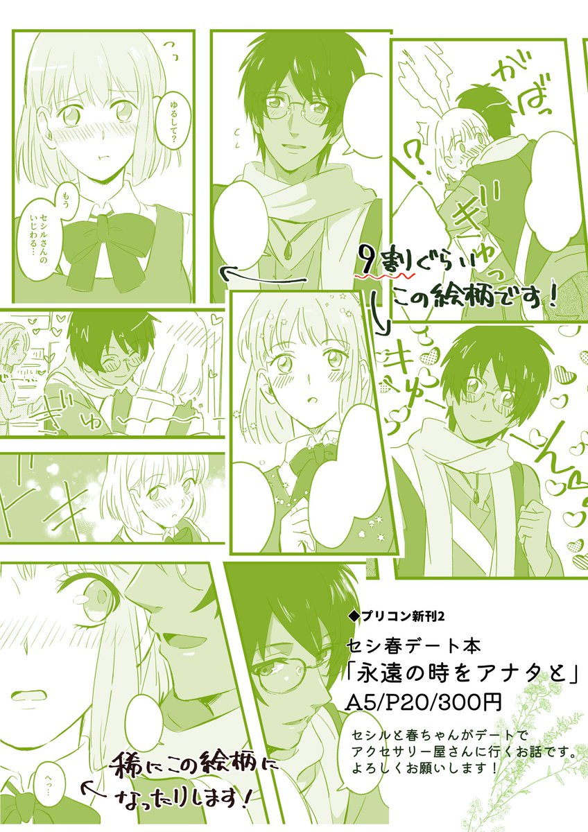 【プリコン18 新刊2冊目サンプル】 東5ホール ツ37b ◆セシ春本「永遠の時をアナタと」 A5/P20/¥300 セシルと春ちゃんがデートでアクセサリー屋さんに行くお話です💚 よろしくお願いいたします! 詳細サンプルpixiv.net/artworks/10478…