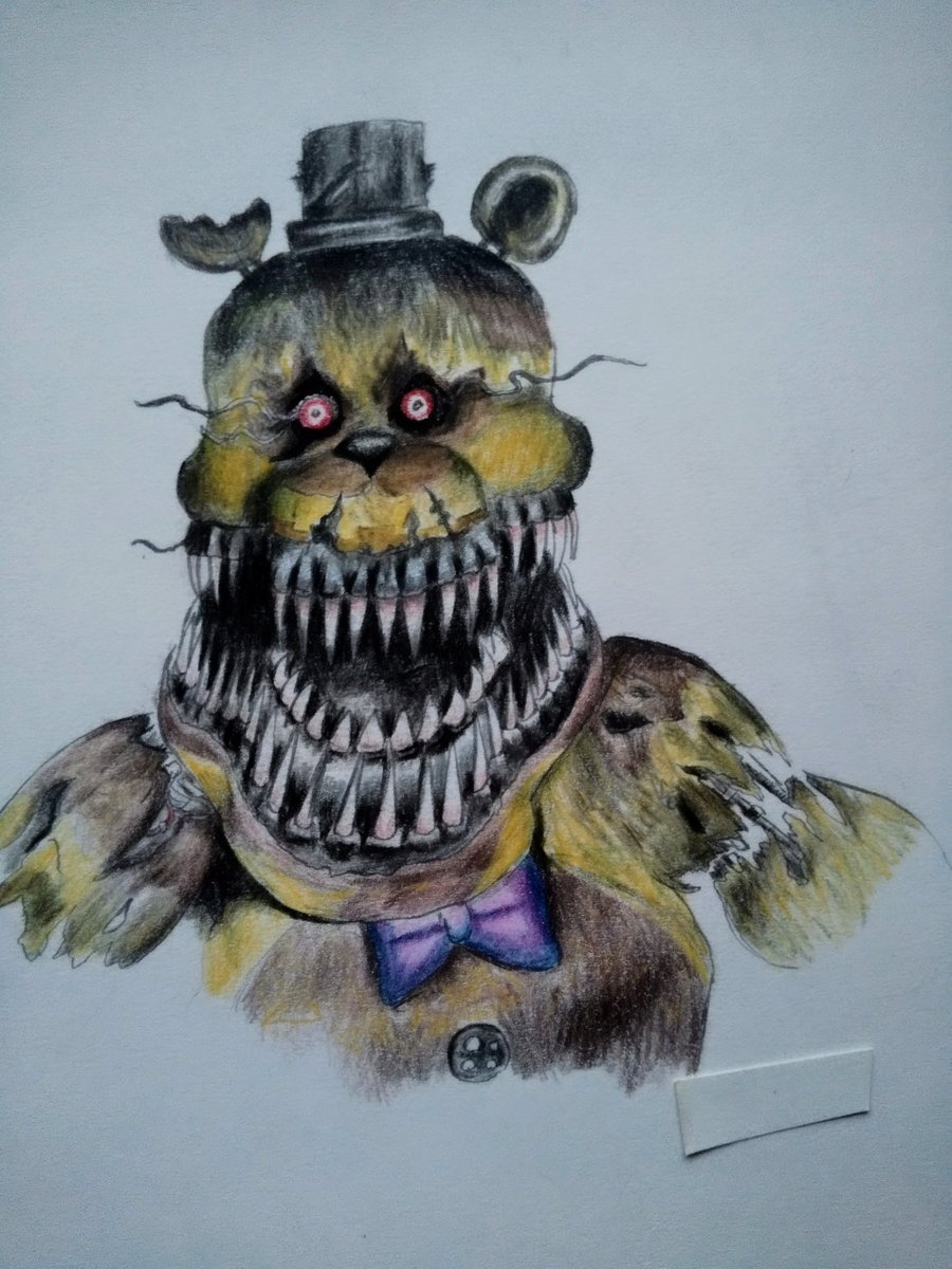 #FNAF #FNAF4 #ナイトメアフレッドベア #絵描きさんと繋がりたい #アナログ絵 #色鉛筆画 現在FNAF2にもハマり中(なのにfnaf4描いてる) 今うちWiFi使えないからオフラインでこんなに楽しめるって凄く嬉しい セキュリティブリッジ楽しみ〜