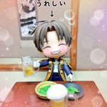 主とサシ飲みする長谷部君。 #ねんどろ刀剣男士