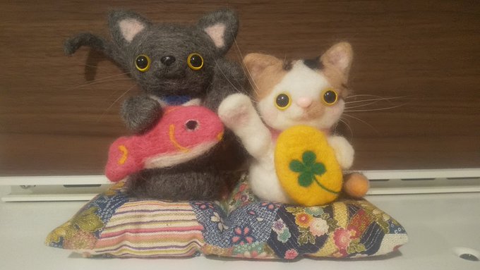 ヒゲがそっくり #羊毛フェルト #ウメ #三毛猫 #猫がいる暮らし #猫がいる幸せ #猫好きさんとつながりたい #CatsofTwittter #catlover だって本物だものw