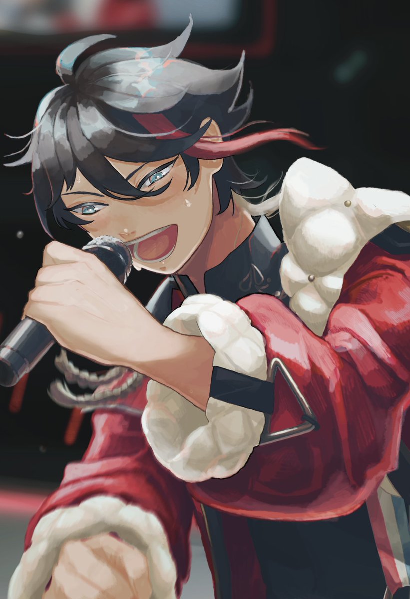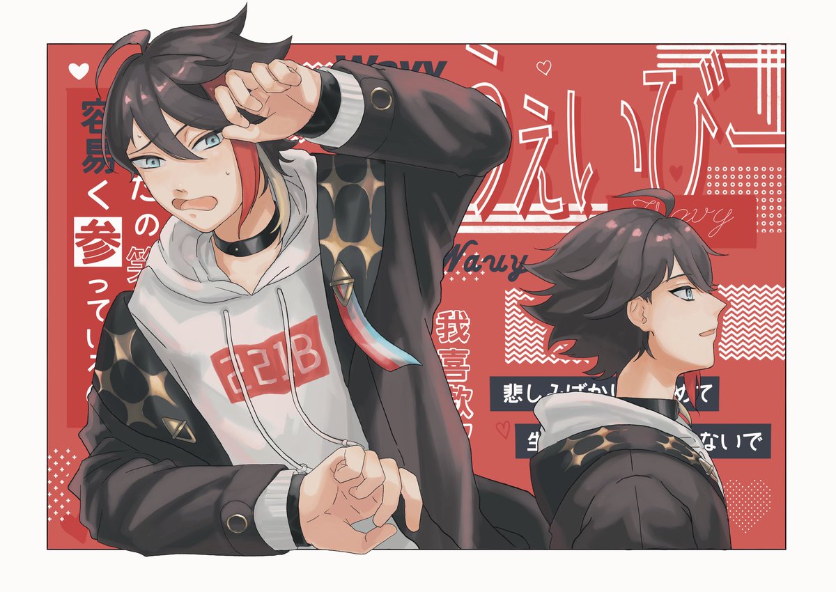 4周年のラブヘイトのときに、ここで左右で受け答えするみたいに歌って、最後に手を伸ばしてグッと自分のところに持っていくの良すぎ???????の絵です #さ絵ぐさ