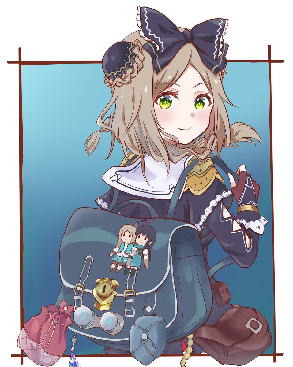 フィリスのお母さんがくれた錬金術士の礼装、姉妹のぬいぐるみがついてるのが高ポイント。だいたいこれ着てます… #アトリ絵