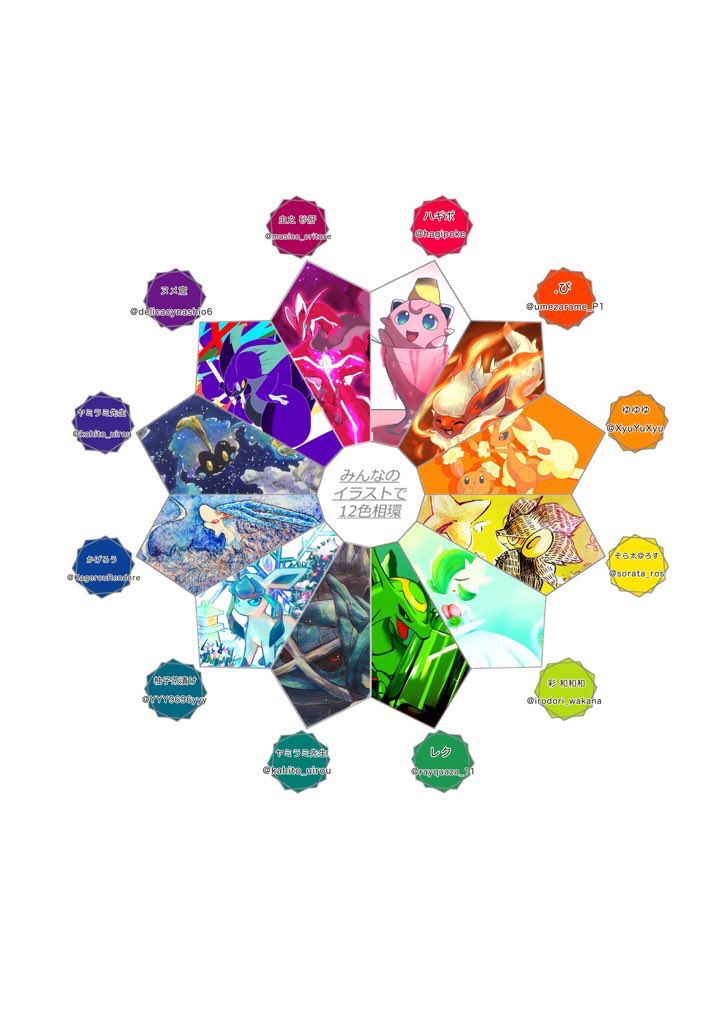 #みんなのイラストで12色相環 遅ればせながら失礼します… ヤミラミ先生さん(@kahito_uirou )の企画に参加させて頂きました〜! ブースター久々に描きました!楽しかったです!ありがとうございました〜✨
