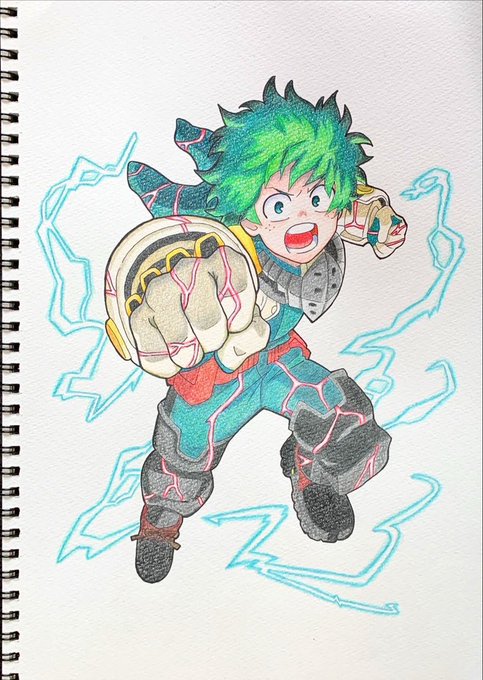 過去絵です。 #模写 #ヒロアカ #緑谷出久 #デク #色鉛筆 #絵描きさんと繋がりたい #イラスト好きさんと繋がりたい