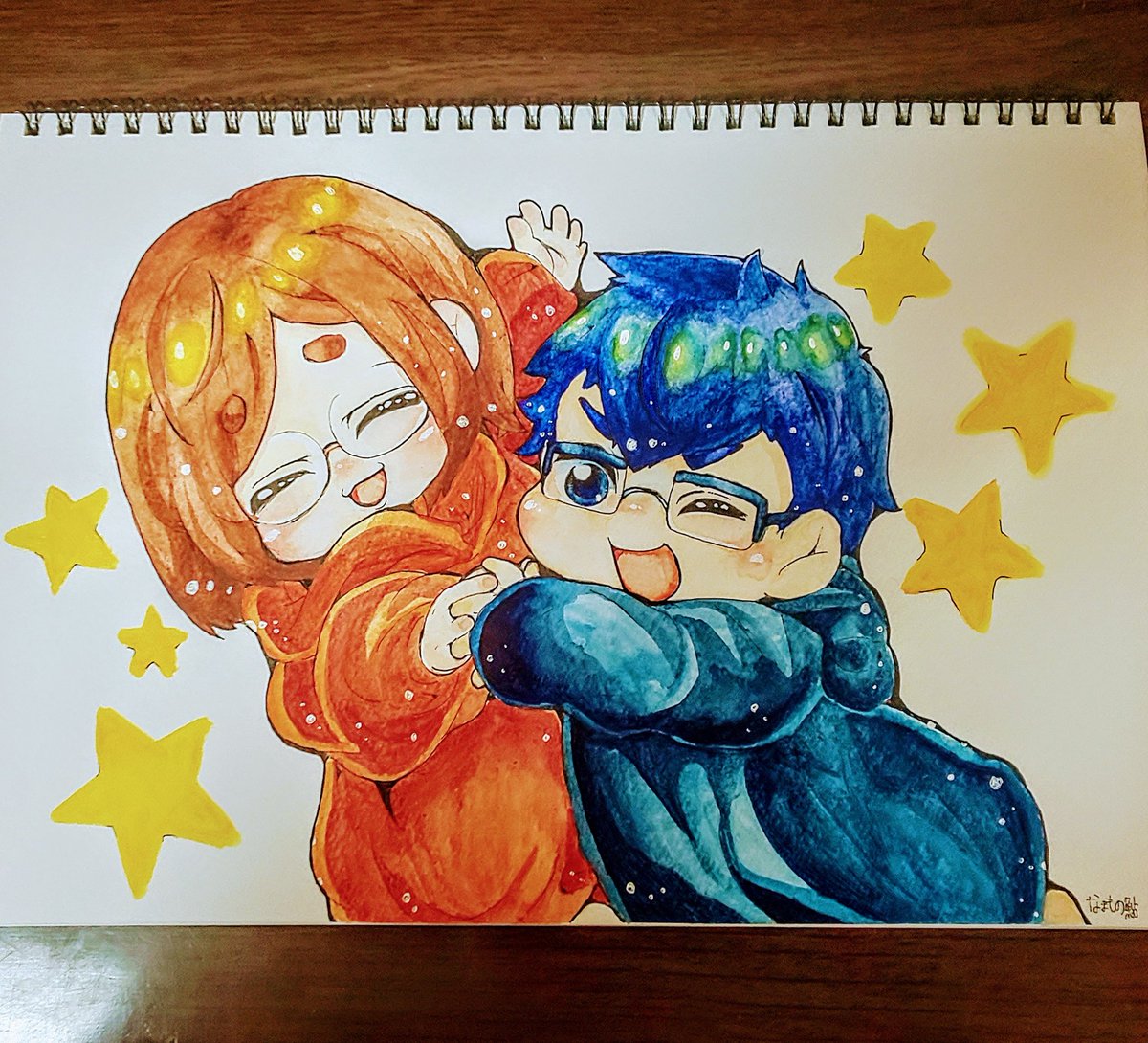 なつめさんち描いてみた! 二回目になるファンアートです! 前はもっときれいに塗れてました…😇 さやさん、げんさん、お二人とも大好きすぎます! 頑張って描いてみました! #なつめさんちの美術室