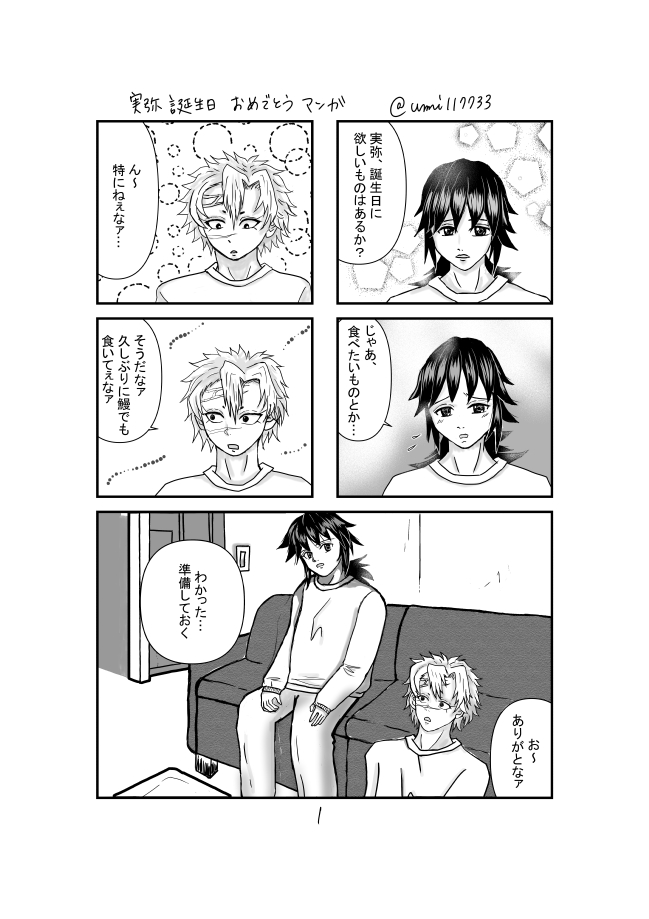 #さねぎゆ版ワンドロワンライ #歳をかさねた君をぎゅっ 運営様いつもありがとうございます🙏 お題「にこにこ」お借りしました。 ぎゅさんのお誕生日に合わせて描きました。 巡り巡ってもさねぎゆに幸せになって欲しいです❤️ (去年の実誕ワンドロ参加漫画と少しリンクしてます。🌲に載せました)