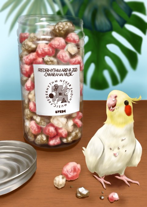 やっと描けたーー!! 推しグッズとオカメインコと夏!! 味付きポップコーンはインコにあげられへんから絵で再現。 (ポップコーン食べてる動画、めっちゃ癒されるから好き。。。) #絵描きさんと繋がりたい #イラスト好きな人と繋がりたい #鳥好きさんと繋がりたい #デジタルイラスト