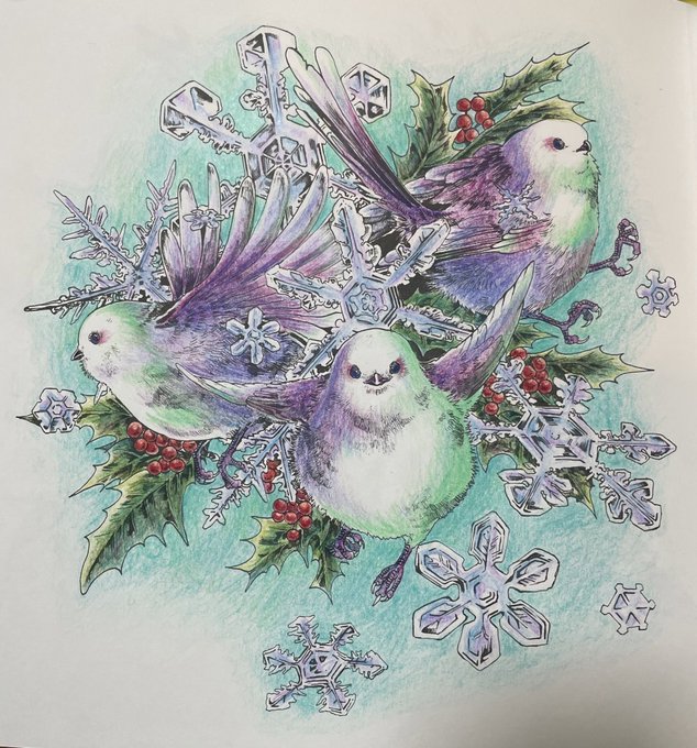 鳥類が大好きなので『雪ん子』を選択しました!! 冬の世界観とミステリアスをテーマに着色。 シマエナガにギャップを出して表現してみました。 アナログはかなり久々でしたが、とても楽しかったです♪ また参加したいです!! #マツダケン塗り絵コンテスト #色鉛筆