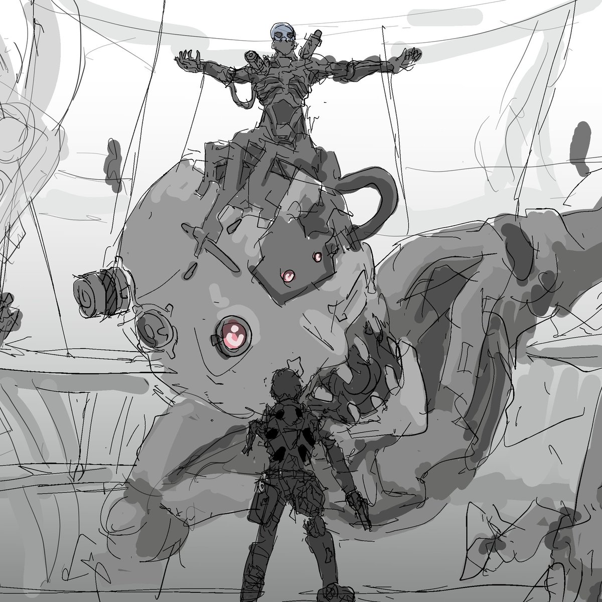 2 12 世界が滅びた跡を探索する二人。 #オリメカ #オリロボ #絵描きさんと繋がりたい 20/06/28 21:10
