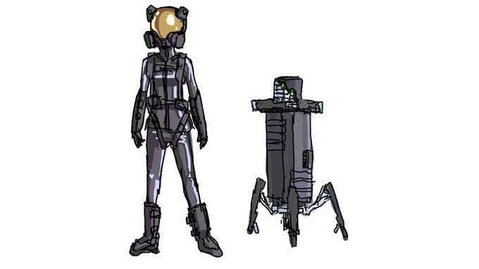 世界が滅びた跡を探索する二人。 #オリメカ #オリロボ #絵描きさんと繋がりたい