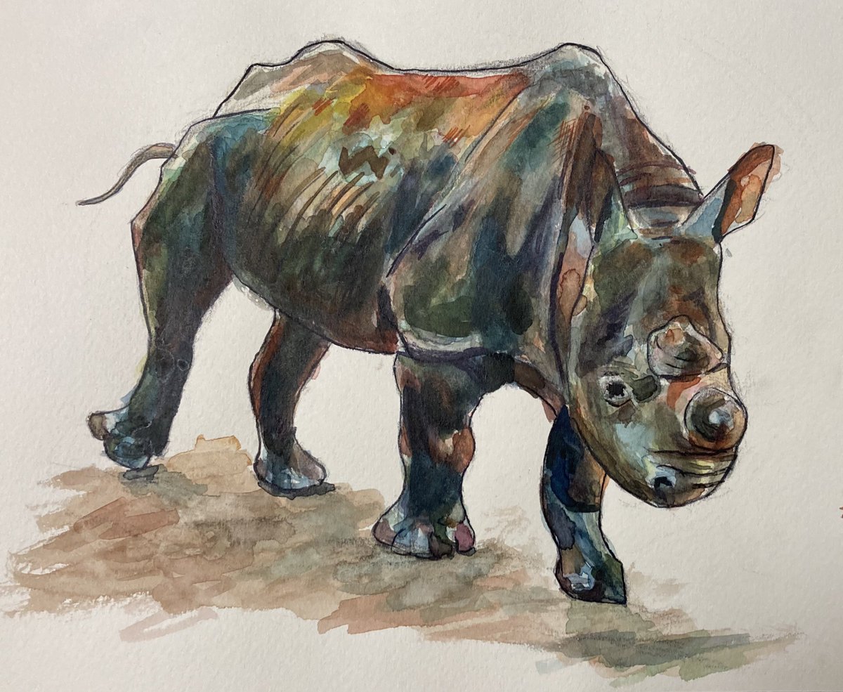 カバじゃありません。シロサイです。 #水彩 #水彩画 #イラスト好きな人と繋がりたい