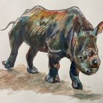1 14 カバじゃありません。シロサイです。 #水彩 #水彩画 #イラスト好きな人と繋がりたい 22/04/07 22:50