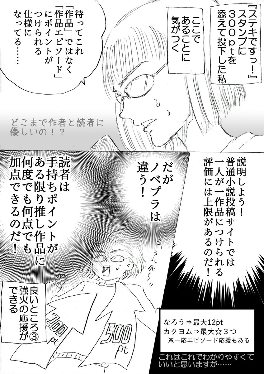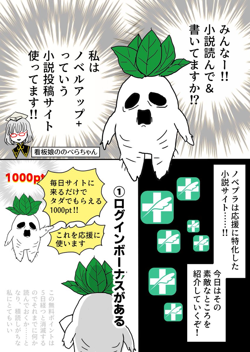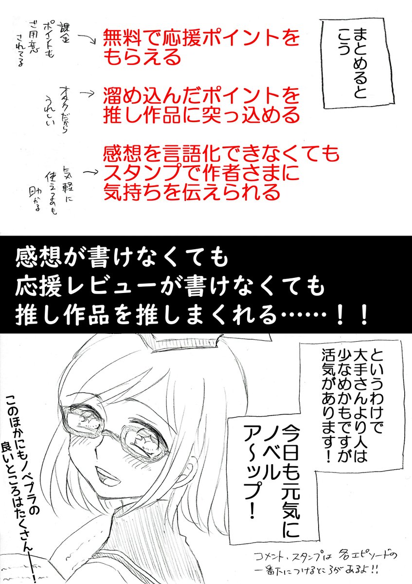 もうすぐノベプラ3周年なのでノベルアップ+はいいぞ漫画を描きました。 この4点は特に気に入ってるところです(ほかにもいろんな工夫のあるサイトだよ!) 小説読む人も! 小説書く人も! ノベプラ始めるなら今……だぜ!! novelup.plus #ノベルアッププラス