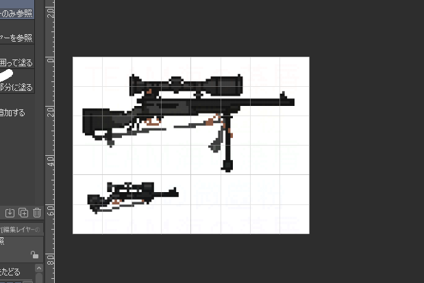 【Chronicle of Grim Reapers】作業進捗。 ざっくり形を決定。これから本塗りしたり、細かいところを直したり、不自然な箇所の調整をしたりします。 (鉱物の微塵粉 #ドット絵 #プレミアムツクールデー