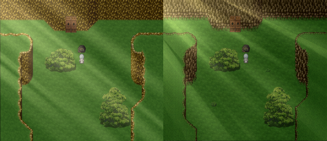 #Chronicleofgrimreapers 作成中ヽ(゚∀゚)ノ作成中 イベント作成と同時進行で、自然物を配置中です。 鉱物の微塵粉が草を生やしました。崖にw あと日差しを左上から射す形に変更。 #ゲ製 #ドット絵 (海ぶどう404)