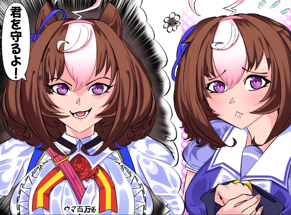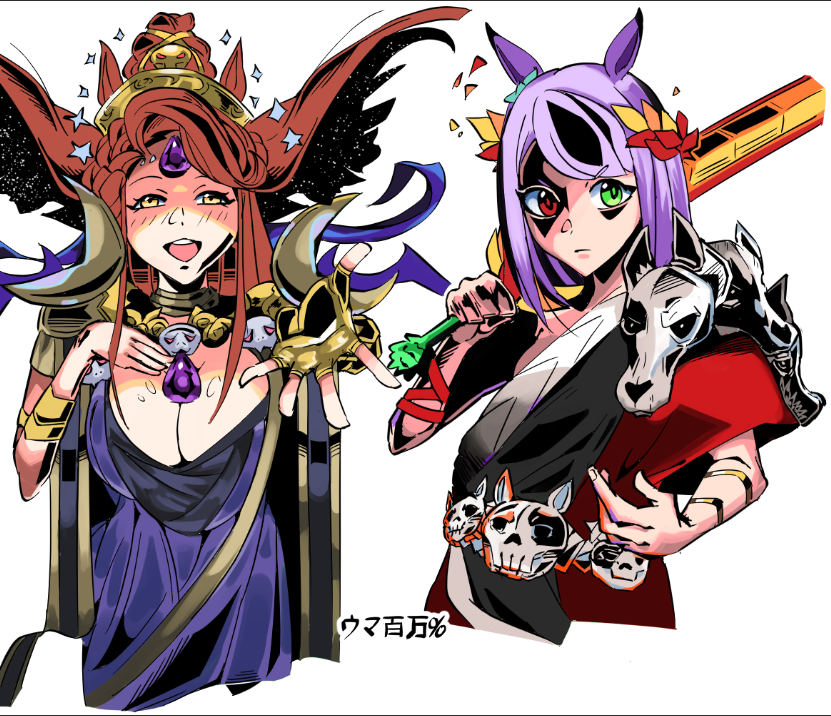 目白マックイーンとゴールドシップ ✌️😨✌️😙💜🤍 #ウマ娘 #イラスト