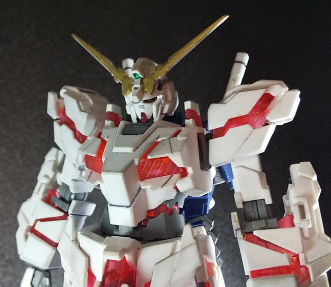 おはようございます😉ユニコーンガンダムその2です😊アンテナを塗りわけしてエッジに気持ちウェザリングをいれています😉グレーは成形色そのままです☺️ #ガンプラの画像貼るとRTされると聞いて #ガンプラ好きと繋がりたい #ガンプラは自由だ #ガンプラ初心者 #ユニコーンガンダム