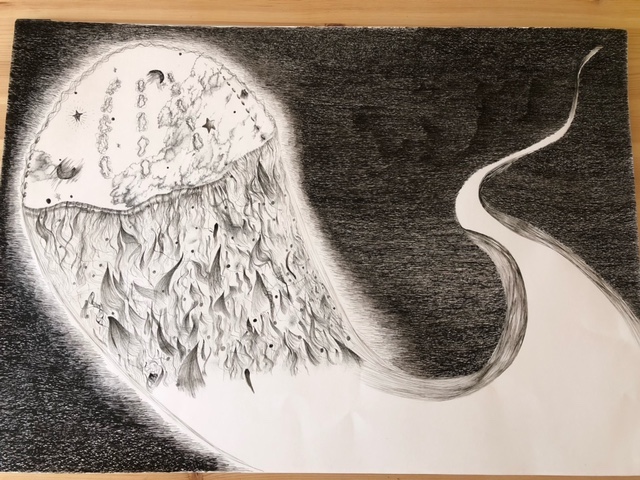 0 6 岩に映る星を描きました! #ペン画 #モノクロイラスト #アナログイラスト 22/09/23 15:33