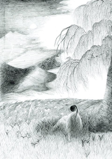 地元の山の風景を描きました。いつか行ってみたいなー♪ #ペン画 #アナログイラスト #モノクロイラスト