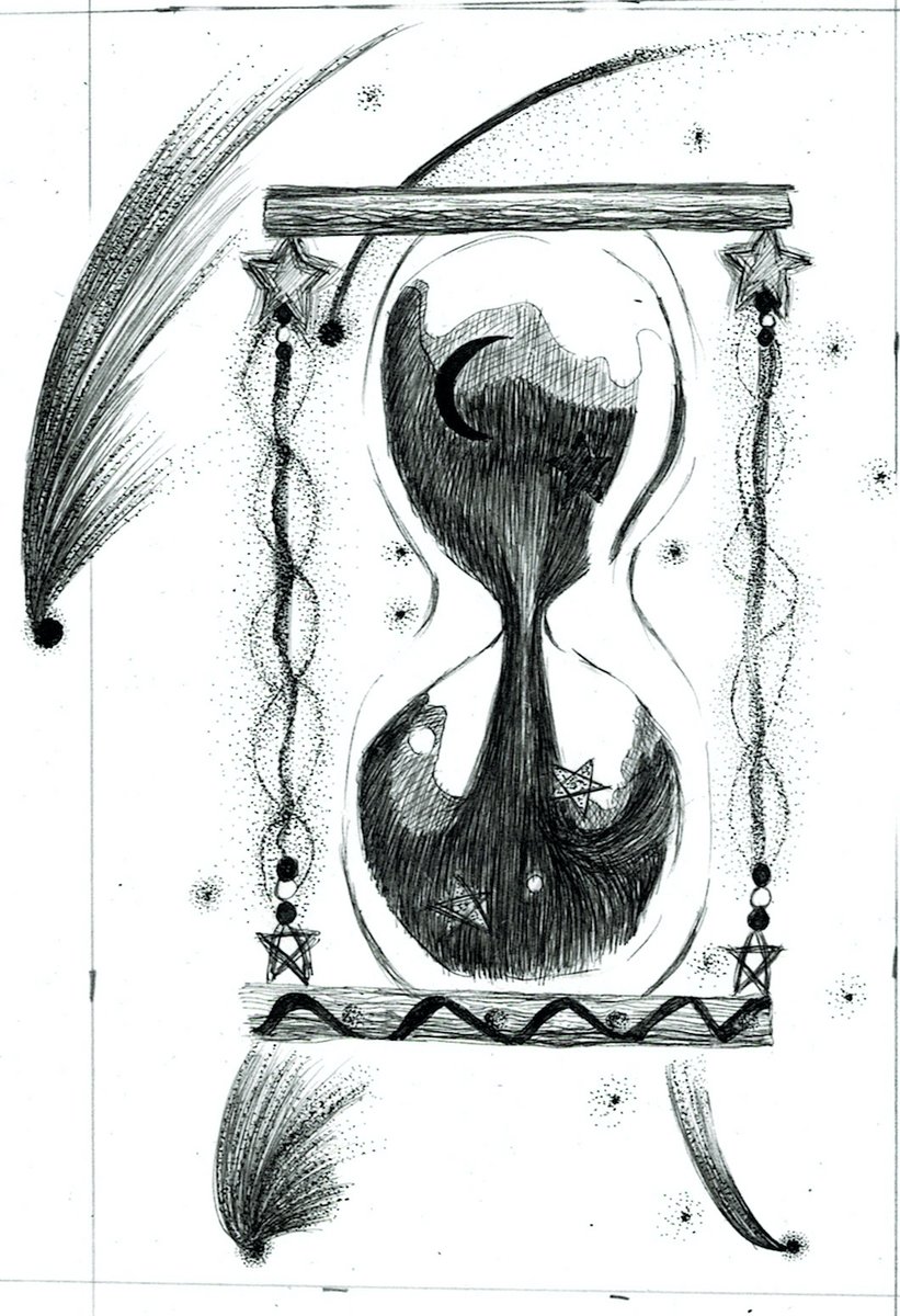 1 8 砂時計です。うみねこげ。 #ペン画 #アナログイラスト #モノクロイラスト 22/08/06 12:48