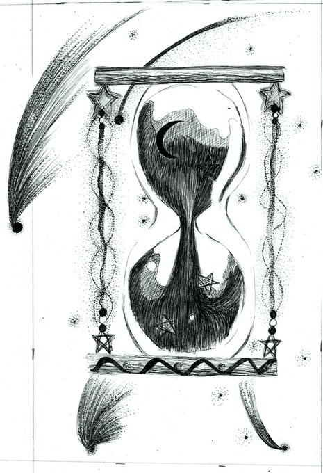 砂時計です。うみねこげ。 #ペン画 #アナログイラスト #モノクロイラスト