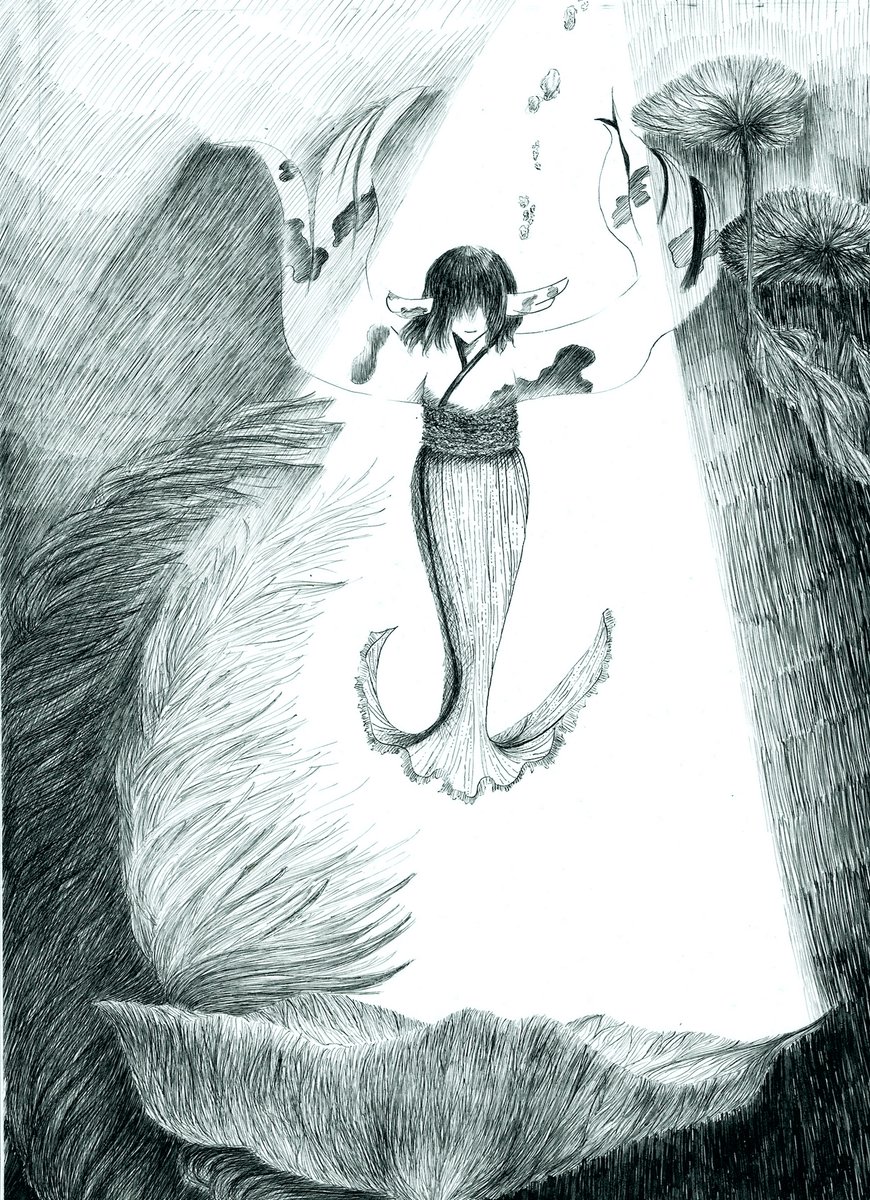 ペン画で天使を描きました! #ペン画 #アナログイラスト #モノクロイラスト