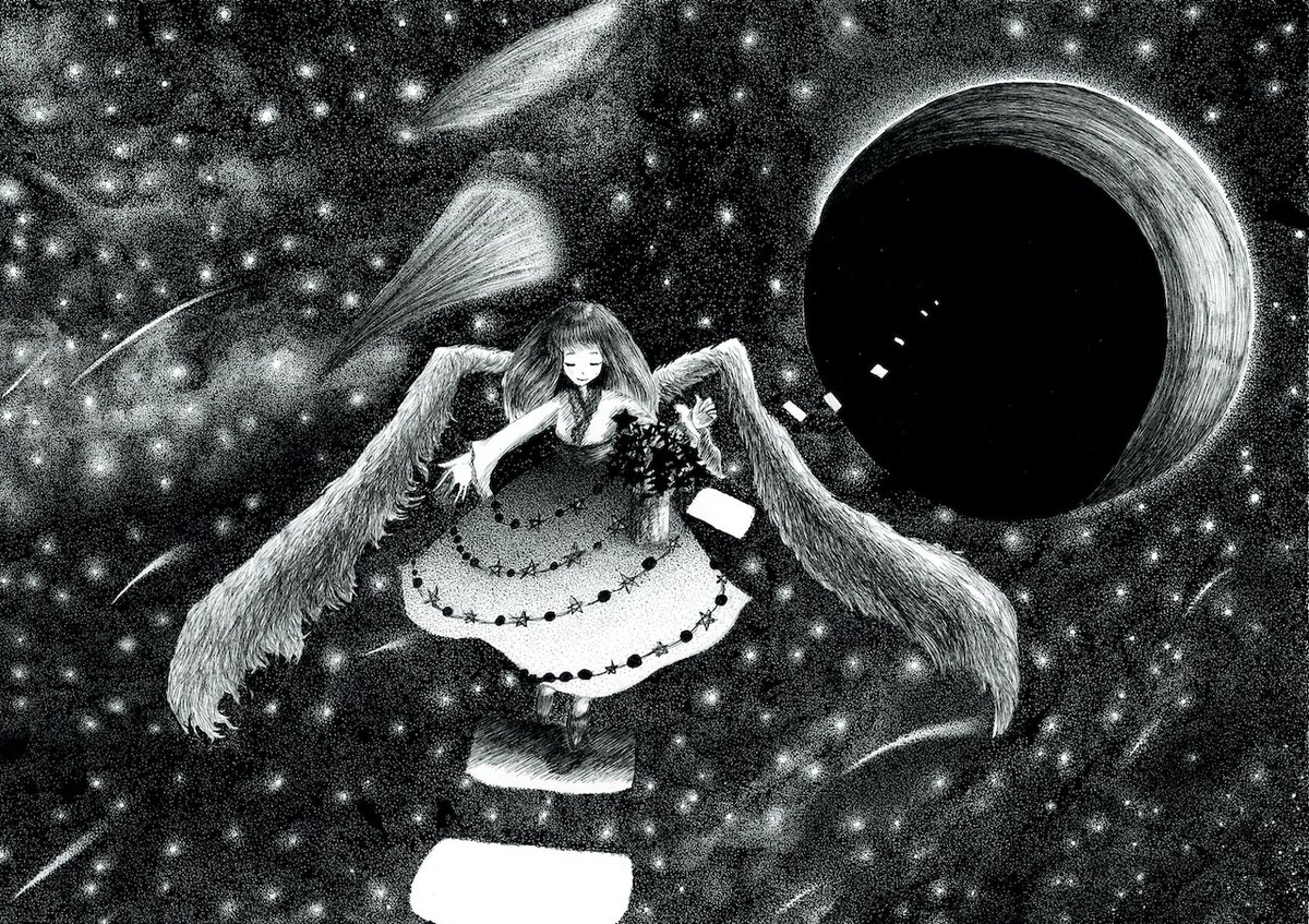 1 7 ペン画で天使を描きました! #ペン画 #アナログイラスト #モノクロイラスト 23/01/18 23:54