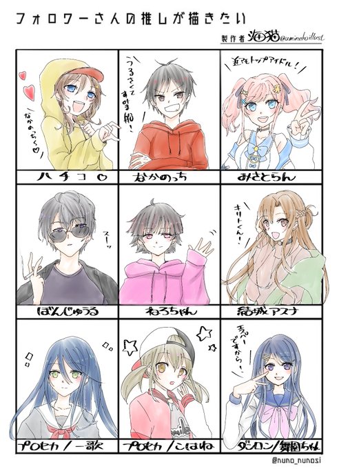 出来たー!ホントに唐突なものにお付き合い下さりありがとうございました! 描くの楽しかった~(*´罒`*) またやる時は是非よろしくお願いします!! 以下リプにてお呼び出しします(*^^*) #フォロワーさんの推しが描きたい