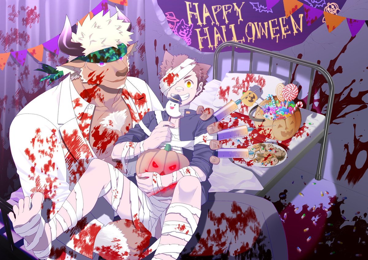 どう見ても間に合ったハロウィン絵(シンノウ×主1)(血糊注意)