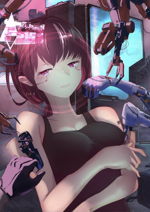#イラスト #うちの子 #cyberpunk 不安なアンドロイド少女