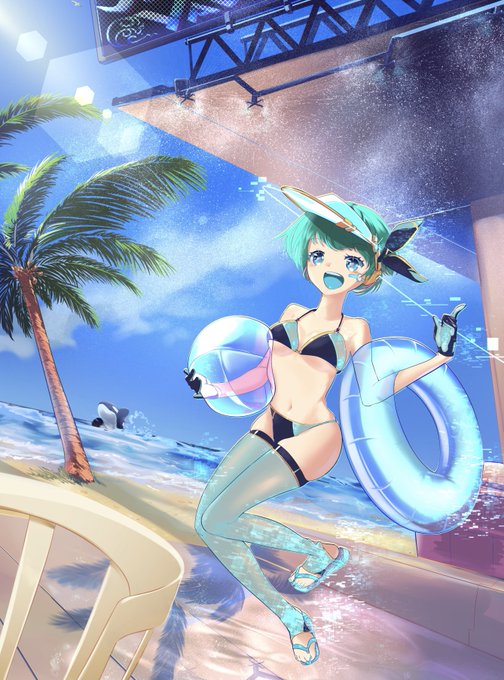 #うちの子 #イラスト 🟩『もうすぐ夏です! 青い海が待っていますよ!!』
