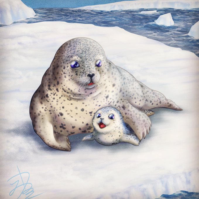 ゴマフアザラシです✨ 親子をイメージして描いてみました。