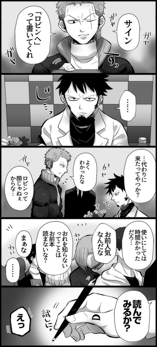 7 50 ロゾまんが ※現パロなのでご注意ください 作家🐯さんのサイン会に来た⚔です✍(もうどなたか描いてそうなネタですが🤔 23/02/02 23:38