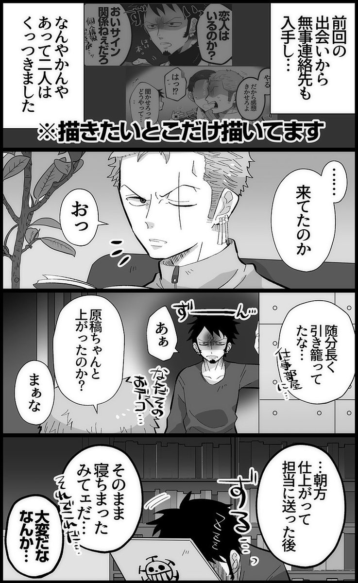 4 61 ロゾまんが ※現パロなのでご注意ください 前回と同じ設定の作家🐯さんです。描きたいとこだけ描いてます✍ 23/02/07 00:54