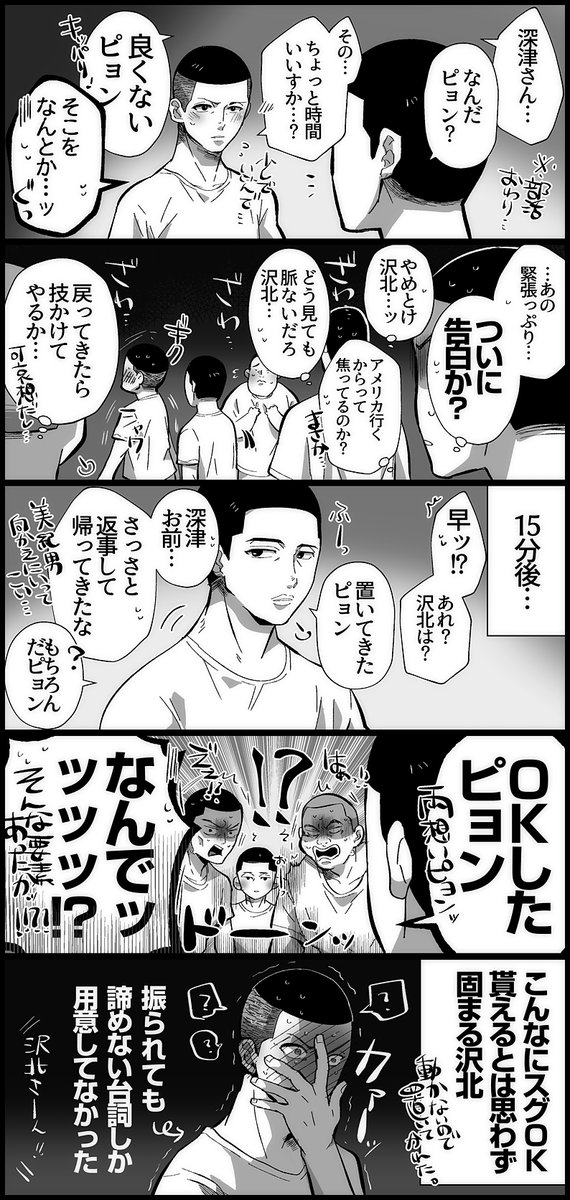 50 340 沢深まんが✍※卒業後しばらく経った話なので深と松に髪の毛が生えているのでご注意ください…🙇♂️ 遠距離恋愛の切なさ皆無です🙏 23/05/02 01:11