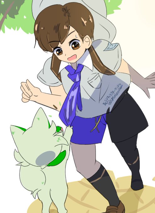 0 2 ニャオハにじゃれられる男主人公 お題:スカーレットバイオレットの キャラクター #ポケモントレーナー版深夜の真剣お絵描き60分一本勝負 22/10/01 23:07