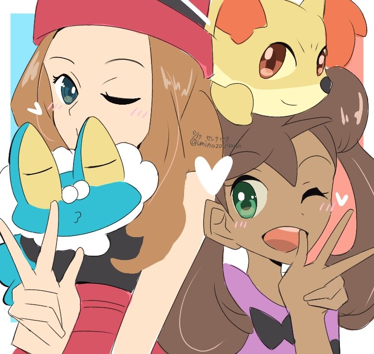 お題:セレナ・サナ お友〜 #ポケモントレーナー版深夜の真剣お絵描き60分一本勝負