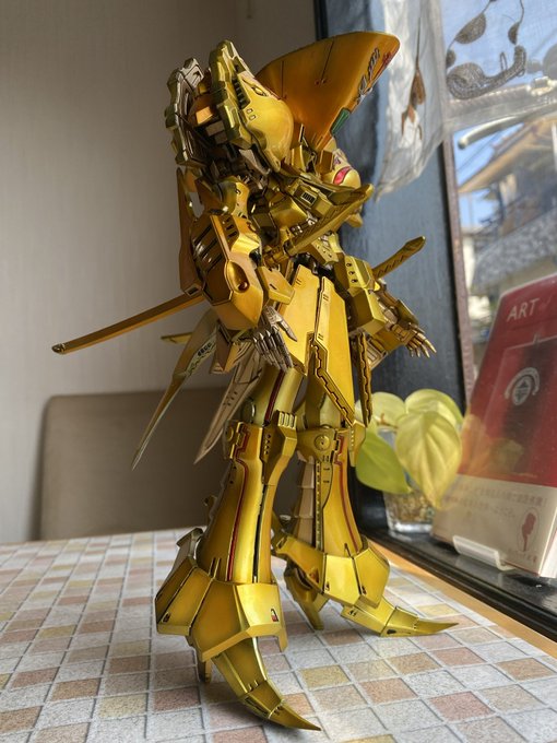 #今年作った模型晒そうぜ 今年一番頑張ったナイトオブゴールド MAX塗りとキャンディ塗装を融合させるためにMAX塗りをしてからパールコート そこからクリアイエローオレンジでキャンディ塗装 色目を合わしきれなかったですが それでも大満足です♪ #ナイトオブゴールド
