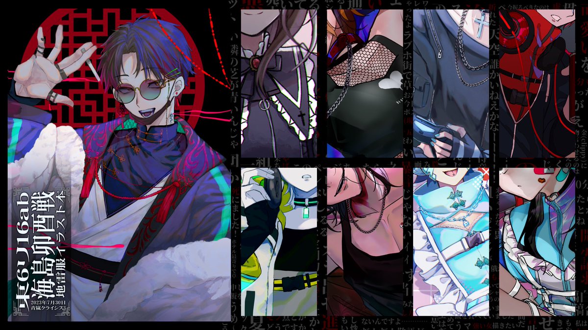 18 32 🔪🖤新刊🖤🔪 7/30日の青嵐クライシス3にて、力ゲプ口地雷服イラスト合同誌を出します!海白はコノハくん、楯山先生、シンタローくんを描きました🥳めちゃくちゃ可愛い本です!!よろしくお願いします!!! A5/20p/¥600 東6ホール リ16ab『海島卯酉線』にて 23/07/27 21:00