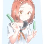 「暑いですね〜。はい、半分こです。」 #ナナピク