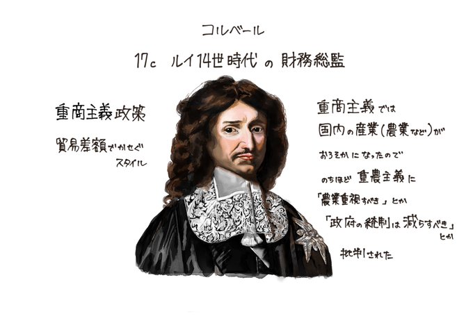 コルベール ルイ14世時代のフランスの財務総監 重商主義をすすめた けっこう頑張り屋さんだったみたいだが、 後の重農主義者たちからはまぁ批判されている #イラスト #illustration #世界史 このレース描くのめちゃくちゃ大変だった……